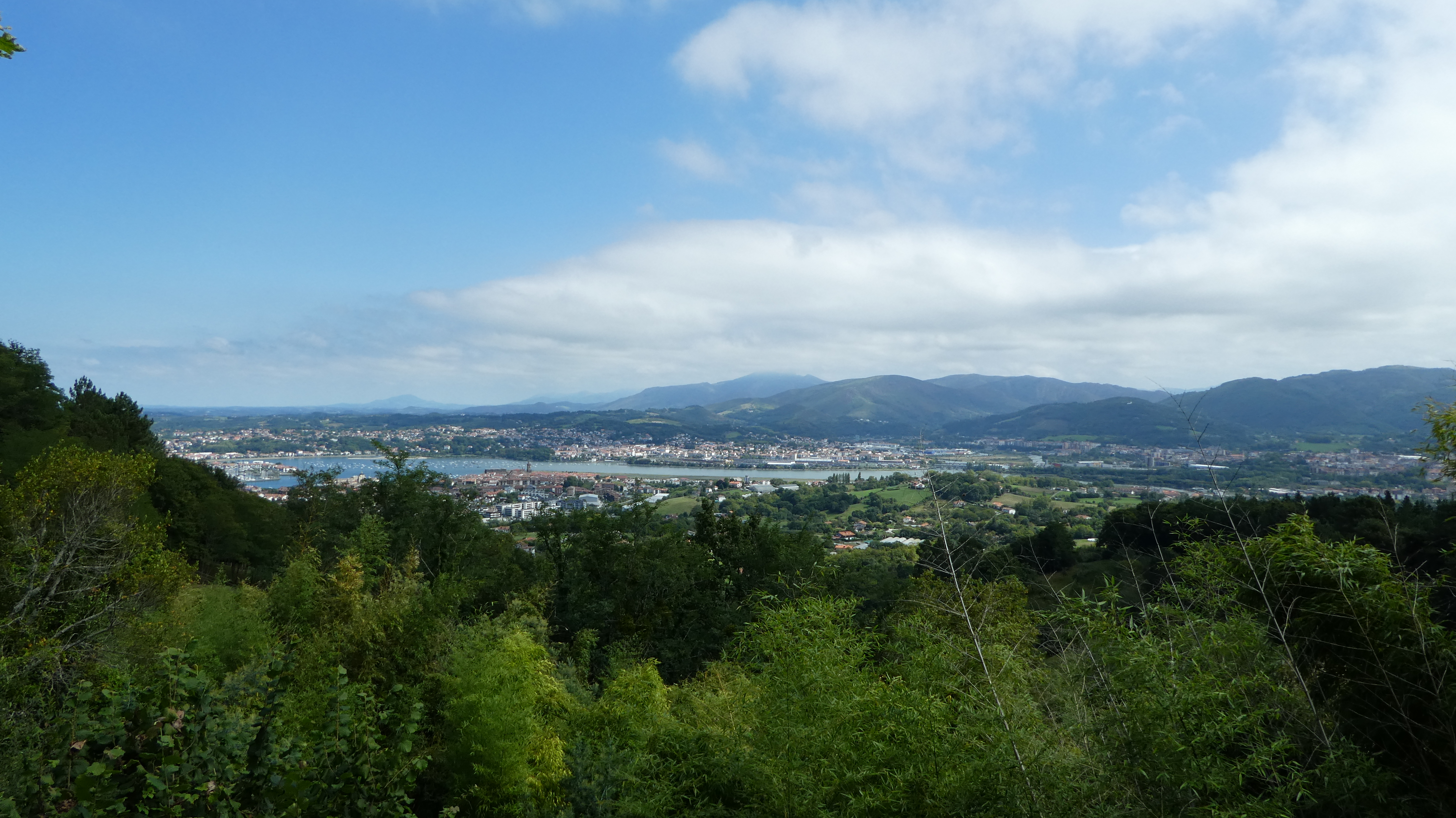 Next 3.3 km is straight up, gaining over 220 m. It may not sound much, but my body is still in the San Diego time zone, not the Camino time zone, and I am carrying a full backpack in a very hot, muggy day. It's tough to go up, but finally, I am on the ridge, and I see Irún below.
